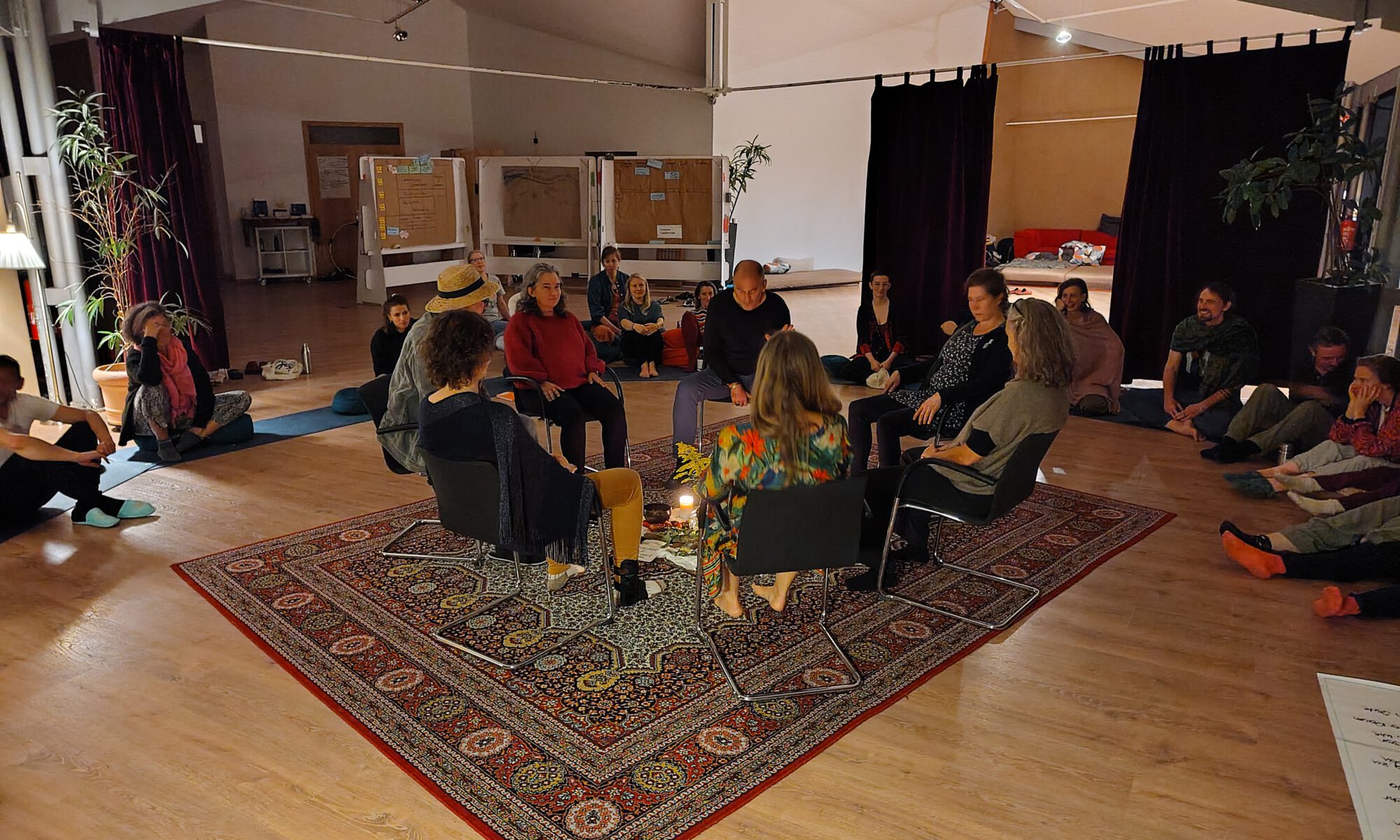 Ein Ältestenrat formierte sich als eigenständiger Resonanz- und Reflexionsraum. Hier wurde Verantwortung übernommen, Zuhören praktiziert, wurden Gefühle und Deutungen geteilt. Das stärkte punktuell psychologische Sicherheit und Selbstermächtigung. Als diese Gruppe sich am Abend – wie bei einem Sketch - in die Mitte des Kreises stellte und über ihre Erfahrungen und Beobachtungen humorvoll, aber dennoch auch mit einem klaren Urteil, sprach, stieß dies auf Resonanz und Wertschätzung. Das Gefühl fehlender Orientierung in der heutigen Zeit wurde zum Ausdruck gebracht. Der Ruf nach Ältesten wurde formuliert.